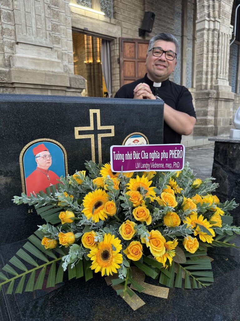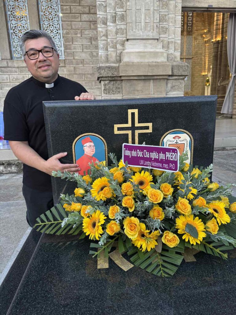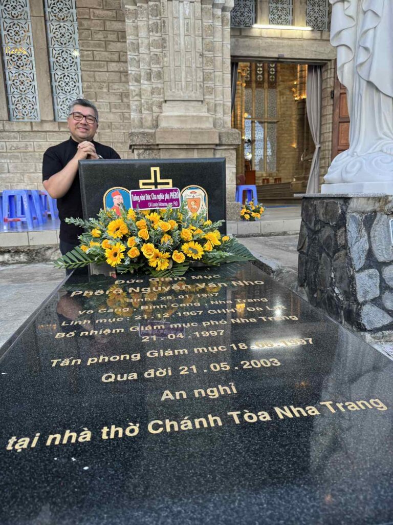 Today, as I stood before the tomb of my beloved Godfather, Bishop Peter Nguyễn Văn Nho, my heart was filled with profound emotion and deep peace. His resting place radiates a sacred presence, as if continuing the humble and total self-giving life that he had offered to God and to the Church.